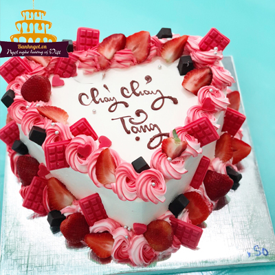 Những mẫu bánh kem cắm dâu nguyên trái thành trái tim nhìn có vẻ đơn giản nhưng lại mang ý nghĩa sâu xa về minh chứng cho tình yêu son sắt thủy chung của mình dành cho người yêu thương.