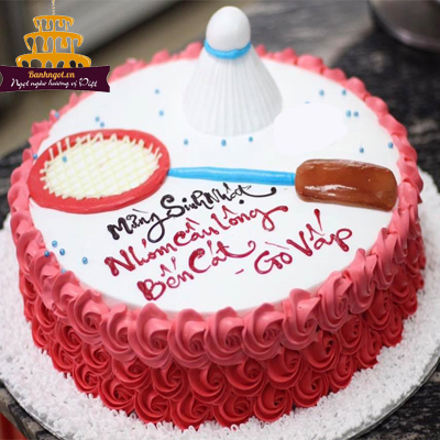 Bánh kem dâu tây vẽ hình vợt cầu lông