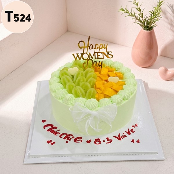 Bánh kem Quốc tế Phụ nữ 8/3 - T524 – Mang cả khu vườn mùa xuân xanh mát vào trong món quà tặng Quốc tế Phụ nữ. Với tone màu xanh lá pastel dịu mắt kết hợp cùng các loại quả nhiệt đới, mẫu bánh T524 mang lại cảm giác nhẹ nhàng, thư thái và tràn đầy năng lượng tích cực. Đây chính là món quà tinh thần tuyệt vời để tri ân phái đẹp. Check ngay khuyến mãi cực hời của tiệm khách yêu ơi!