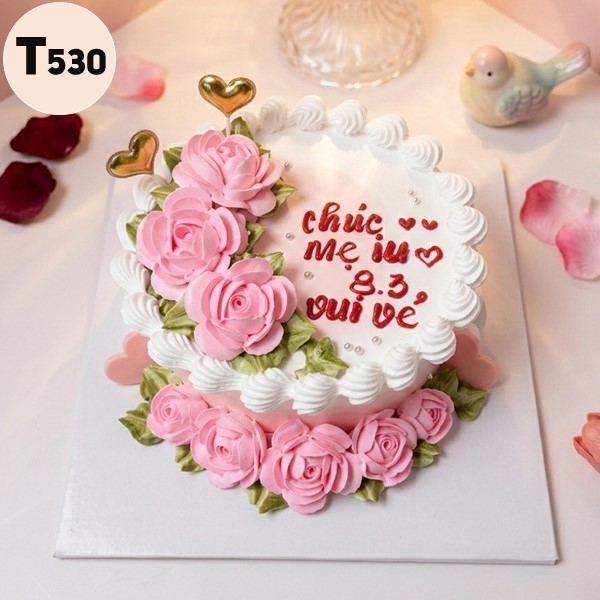 Bánh kem Quốc tế Phụ nữ 8/3 - T530 là một "vườn hồng" thu nhỏ dành tặng phái đẹp, mang phong cách lãng mạn và đầy sức sống. Nếu khách đang tìm một mẫu bánh rực rỡ để làm nổi bật bữa tiệc ngày 8/3 thì T530 chính là câu trả lời. Mẫu bánh đang nằm trong top "best-seller" của tiệm, đừng bỏ lỡ ưu đãi hôm nay. Chat với em để đặt lịch nhé!
