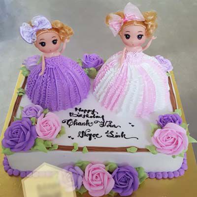 Chiếc bánh kem hình cô công chúa trong bộ váy lung linh hoa lệ dự tiệc cùng hoàng tử chính là mẫu bánh kem được nhiều người ưa thích mua cho bé gái nhà mình bởi sự hoành tráng và đẹp mắt trong từng chi tiết của chiếc bánh, giúp tôn lên vị thế của bé gái nhà họ.