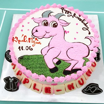 Dê là loài vật cực kỳ đáng yêu và thân thiện ở ngoài đời, khi được tái hiện lại trên bánh sinh nhật hình con dê cái vẫn giữ nét hiền lành ấy và thêm vào là sự đáng yêu cùng ngây ngô đến buồn cười, bảo đảm khiến người nhận vui vẻ vô cùng.