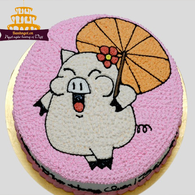 Mẫu bánh kem vẽ hình con heo