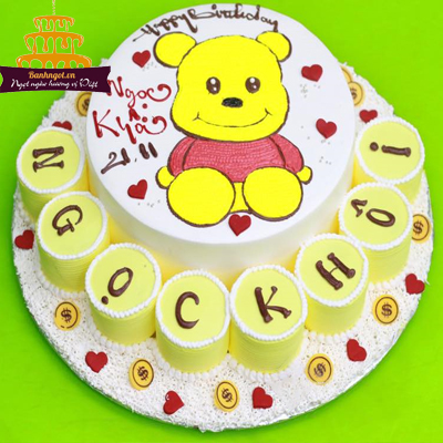 Gấu Pooh cũng sở hữu kha khá lượng fan em bé ngày nay nên ba mẹ cũng có thể chọn mẫu bánh kem hình gấu Pooh vàng cho bé nhé!