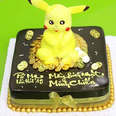 Bánh Pikachu là mẫu bánh sinh nhật hình Pikachu màu vàng đáng yêu luôn luôn ở cạnh Satoshi. Pikachu gây ấn tượng mạnh với mọi người bởi vẻ ngoài cực đáng yêu, hình dáng nhỏ nhắn dễ thương nhưng sức mạnh lại vô cùng khủng, luôn mang về chiến thắng cho Satoshi.