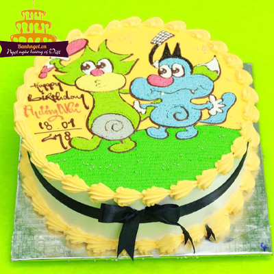 Bánh sinh nhật hình mèo Oggy và 3 chú gián