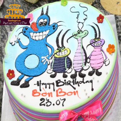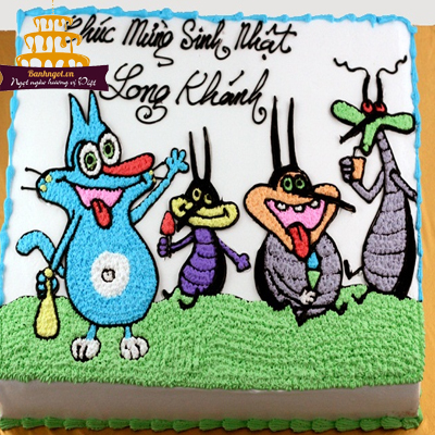 Bánh sinh nhật hình Mèo Oggy và đồng bọn
