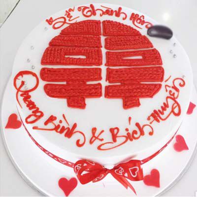 Những chiếc bánh kem cưới lãng mạn với màu đỏ chủ đạo cực kỳ có ý nghĩa, màu đỏ của may mắn và màu đỏ của phước lành, hỷ sự và sớm sinh quý tử. Màu đỏ cũng là màu truyền thống đám cưới phương Đông, khác với màu trắng của bánh kem đám cưới phương Tây.