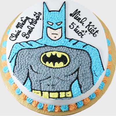 Chiếc bánh sinh nhật vẽ hình batman được thợ làm bánh vẽ lại thật giống những đường nét mạnh mẽ của anh chàng đẹp trai Batman, cùng những phụ kiện đơn giản như lời chúc lại rất hài hòa, đẹp mắt và làm hài lòng bất cứ ai xem qua.