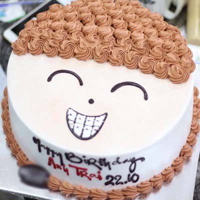 Đối với mẫu bánh sinh nhật ngộ nghĩnh cho bé trai đơn giản, bạn có thể chọn mẫu bánh vẽ khuôn mặt đáng yêu của bé dạng hoạt hình hay chibi lên bánh, vừa dễ thương đơn giản lại bắt mặt đẹp ấn tượng